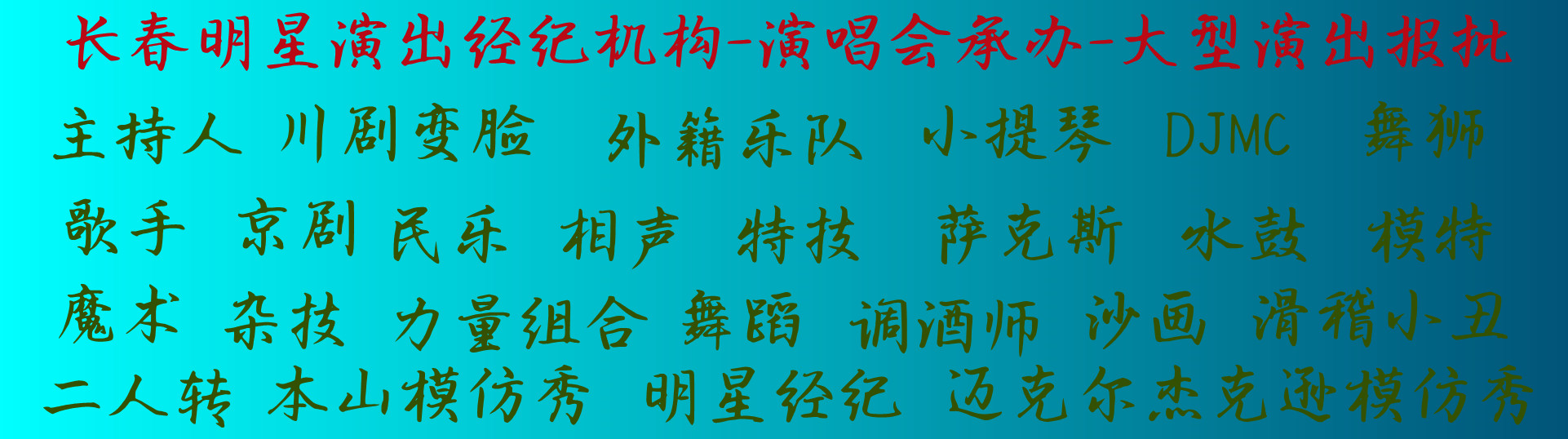 長春演出公司-承接中大型演出策劃執行,企業年會演出,校慶廠慶演出,公司開業演出,明星經紀演出,晚會,發布會,答謝會演出,音樂節,啤酒節演出。